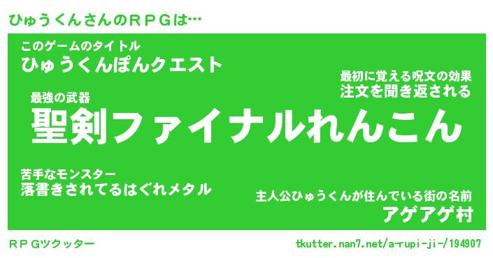 | 伝説のあだ名 | 『伝説の竜騎士ひゅうくん』 |