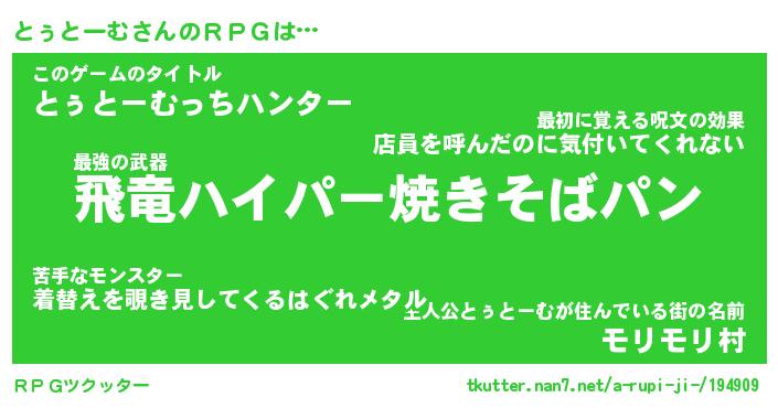 | ファンタジー風あだ名 | 『トゥフェル』『エターナルトゥトームー』 |