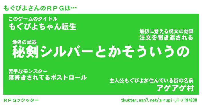 | 伝説のあだ名 | 『伝説の傭兵もぐぴよ』 |