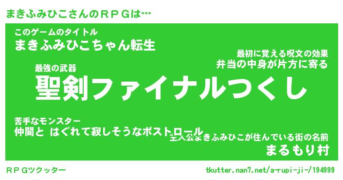 | 男性向けラノベタイトル風あだ名 | 『まきふみひこの憂鬱』 |