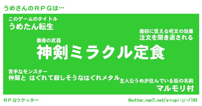| ファンタジー風あだ名 | 『ウメフェル』『エターナルウメー』 |