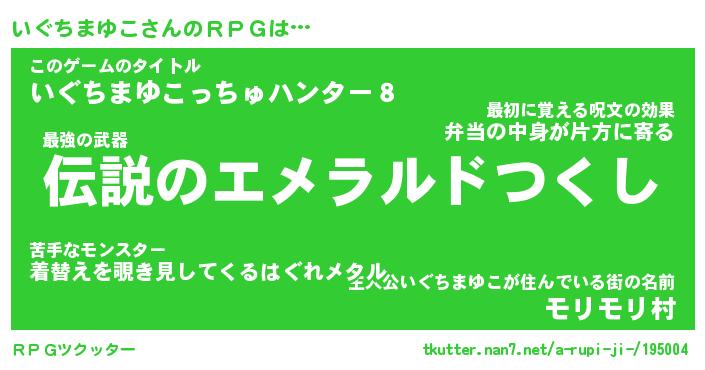 | 肩書あだ名 | 『いぐちまゆこ御曹司』 |