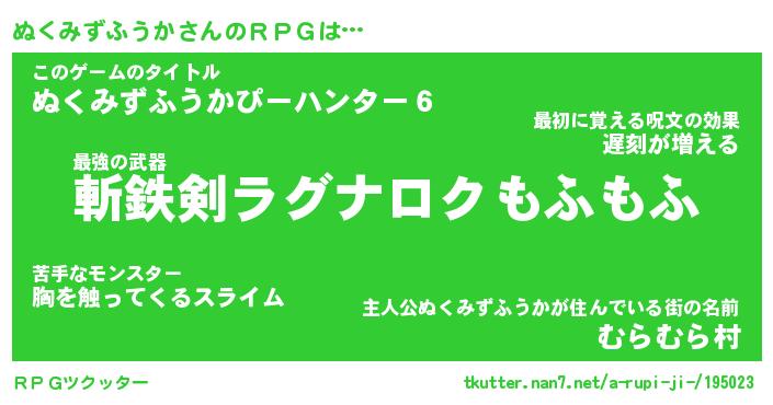 | 伝説のあだ名 | 『伝説の竜騎士ぬくみずふうか』 |