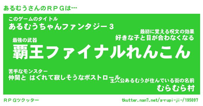 | 伝説のあだ名 | 『封印されし竜騎士あるむう』 |