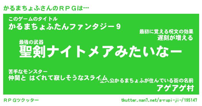 | 男性向けラノベタイトル風あだ名 | 『かるまちょふの憂鬱』 |