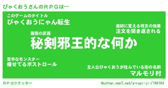 | 男性向けラノベタイトル風あだ名 | 『びゃくおうの憂鬱』 |
