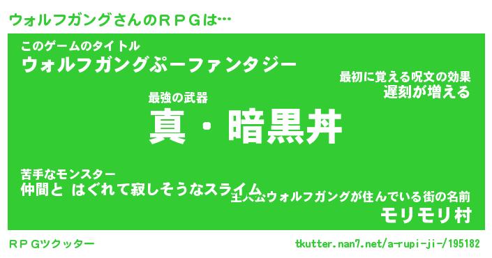 | 男性向けラノベタイトル風あだ名 | 『ウォルフガングアートオンライン』 |