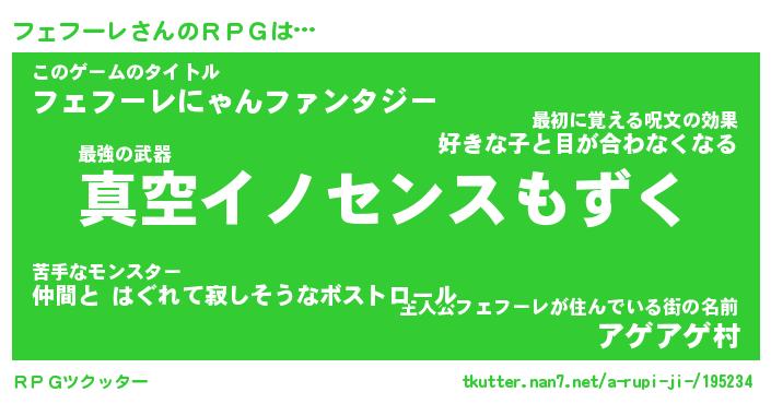 | ファンタジー風あだ名 | 『フェフェル』『エターナルフェフーレー』 |