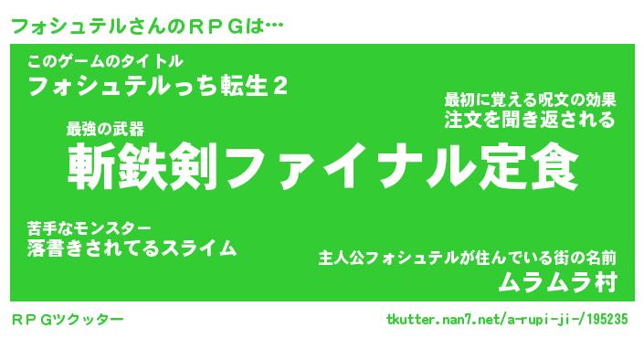 | 伝説のあだ名 | 『伝説の竜騎士フォシュテル』 |