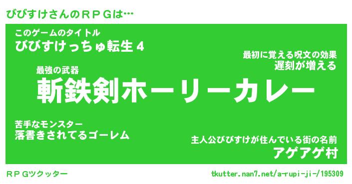 | 男性向けラノベタイトル風あだ名 | 『びびすけの憂鬱』 |