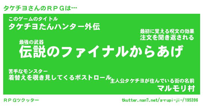 | ファンタジー風あだ名 | 『タケフェル』『エターナルタケチヨー』 |