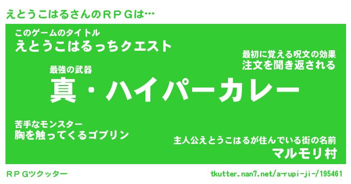 | 伝説のあだ名 | 『封印されし竜騎士えとうこはる』 |