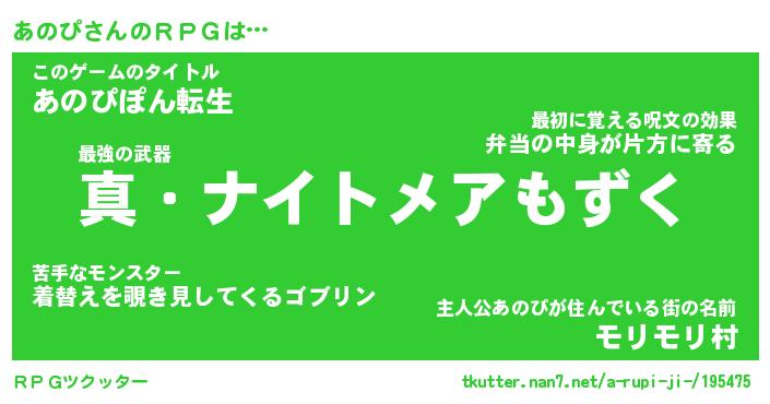 | ファンタジー風あだ名 | 『アノフェル』『エターナルアノピー』 |