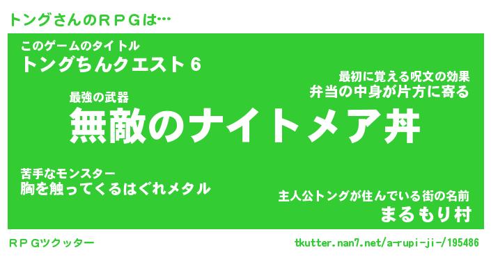 | 男性向けラノベタイトル風あだ名 | 『トングアートオンライン』 |