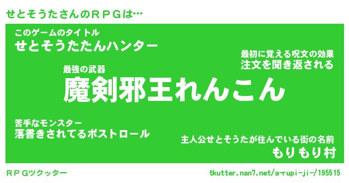 | 男性向けラノベタイトル風あだ名 | 『せとそうたの憂鬱』 |