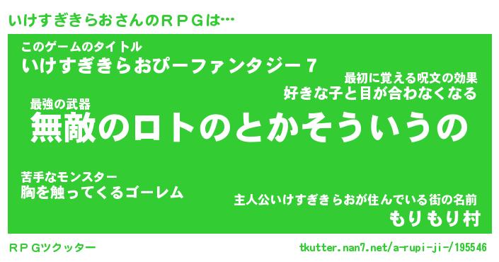 | 胡散臭い通販商品みたいなあだ名 | 『億万長者になれるブレスレット…その名も「いけすぎきらお」』 |