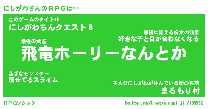 | ファンタジー風あだ名 | 『ニシフェル』『エターナルニシガワー』 |