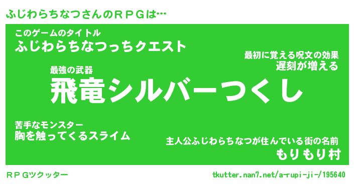 | 男性向けラノベタイトル風あだ名 | 『フジワラチナツアートオンライン』 |