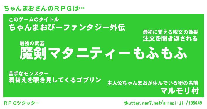 | 男性向けラノベタイトル風あだ名 | 『ちゃんまおの憂鬱』 |