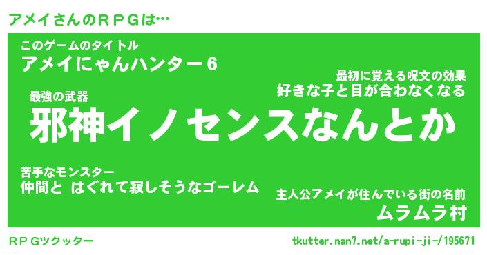 | ファンタジー風あだ名 | 『アメフェル』『エターナルアメイー』 |