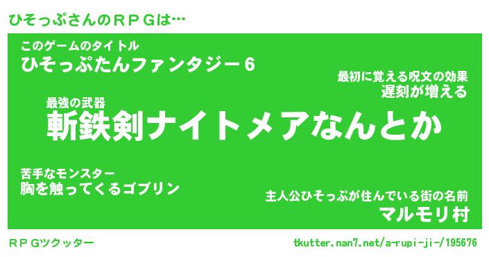 | 男性向けラノベタイトル風あだ名 | 『ひそっぷの憂鬱』 |