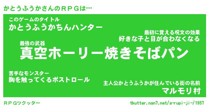 | 男性向けラノベタイトル風あだ名 | 『カトウフウカアートオンライン』 |