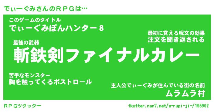 | 男性向けラノベタイトル風あだ名 | 『でぃーぐみの憂鬱』 |