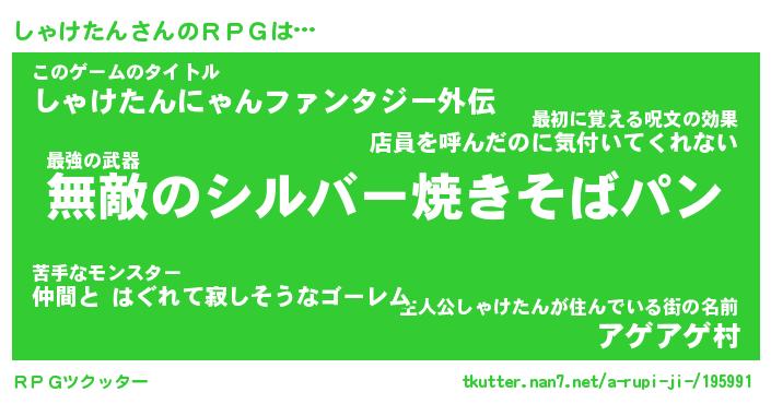| ファンタジー風あだ名 | 『シャフェル』『エターナルシャケタンー』 |