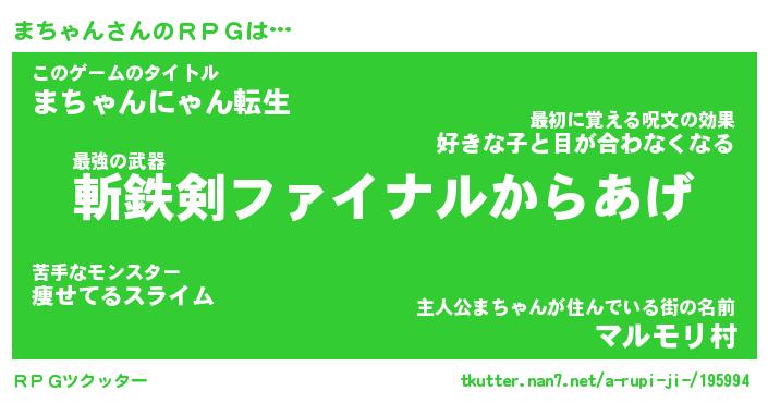 | ファンタジー風あだ名 | 『マチフェル』『エターナルマチャンー』 |
