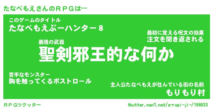 | 伝説のあだ名 | 『伝説の傭兵たなべもえ』 |