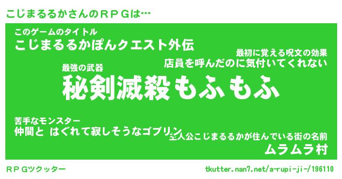 | 胡散臭い通販商品みたいなあだ名 | 『必ず成功する霊験あらたかなお札…その名も「こじまるるか」』 |