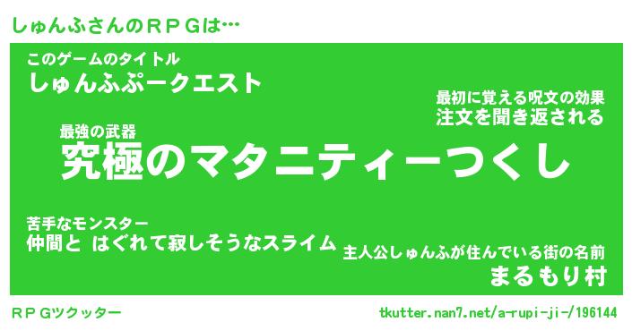 | ファンタジー風あだ名 | 『シュフェル』『エターナルシュンフー』 |