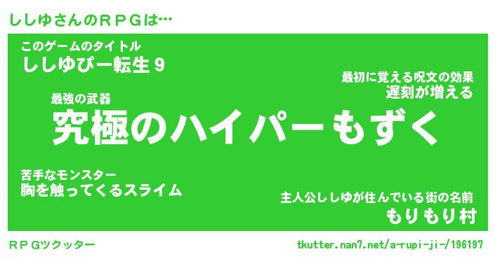 | ファンタジー風あだ名 | 『シシフェル』『エターナルシシユー』 |