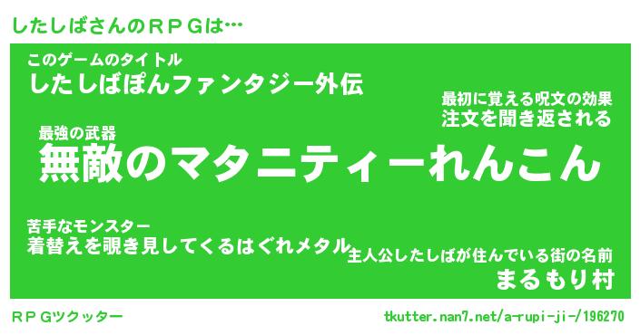| ファンタジー風あだ名 | 『シタフェル』『エターナルシタシバー』 |