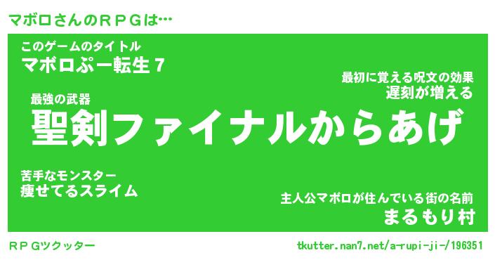 | 伝説のあだ名 | 『伝説の竜騎士マボロ』 |