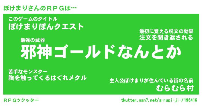 | ファンタジー風あだ名 | 『ポケフェル』『エターナルポケマリー』 |