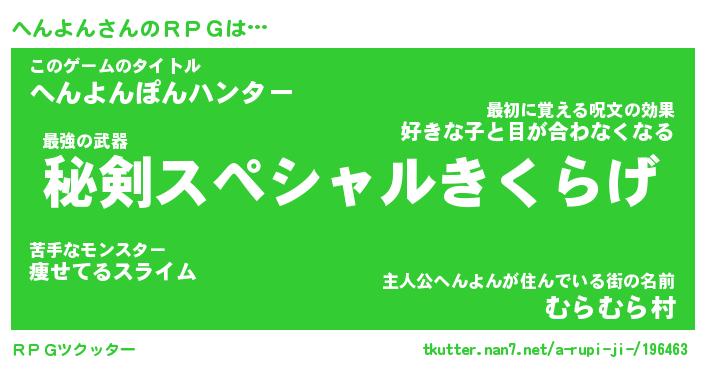 | ヒーロー風カッコイイあだ名 | 『スーパーヘンヨン』『魔戒騎士ヘン』 |