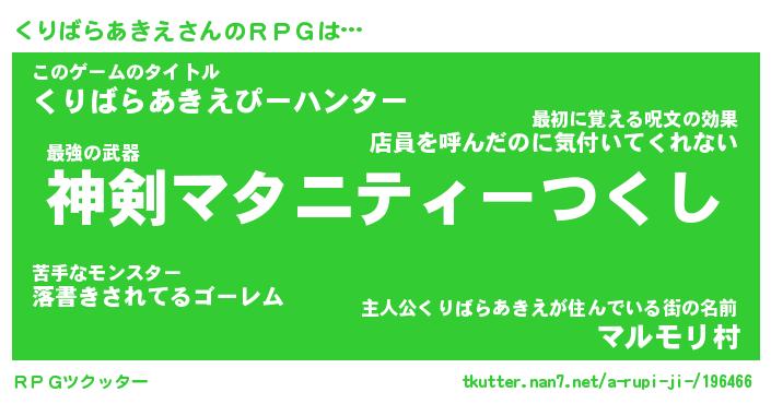 | 肩書あだ名 | 『くりばらあきえ御曹司』 |