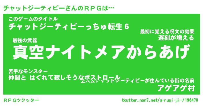 | 男性向けラノベタイトル風あだ名 | 『チャットジーティピーアートオンライン』 |