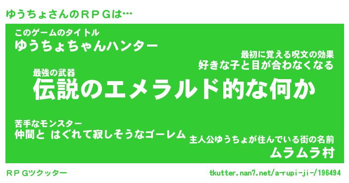 | ファンタジー風あだ名 | 『ユウフェル』『エターナルユウチョー』 |