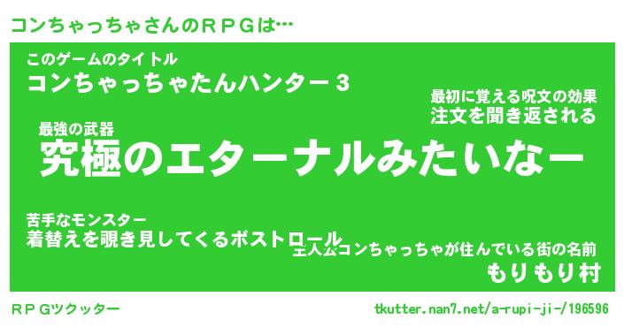 | 男性向けラノベタイトル風あだ名 | 『コンちゃっちゃの憂鬱』 |
