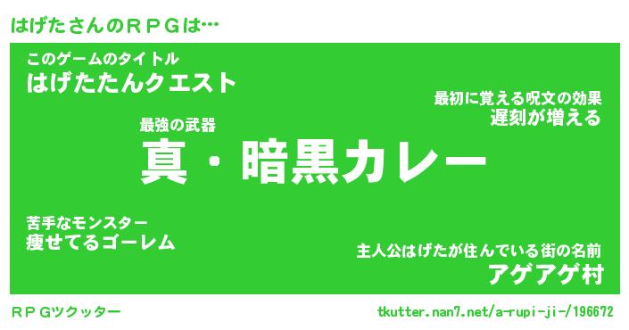 | 男性向けラノベタイトル風あだ名 | 『ハゲタアートオンライン』 |