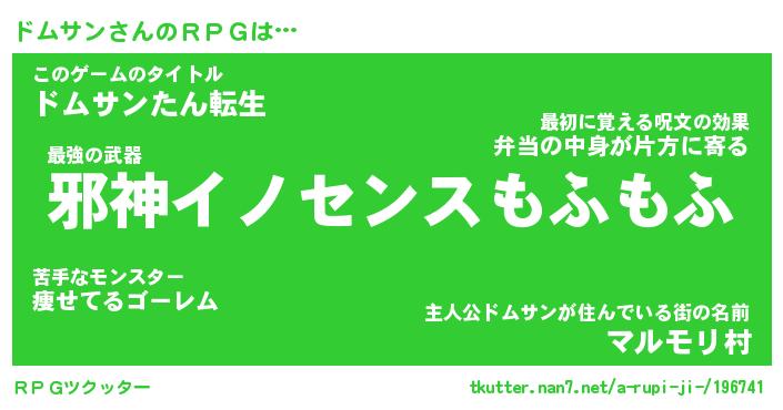 | ファンタジー風あだ名 | 『ドムフェル』『エターナルドムサンー』 |