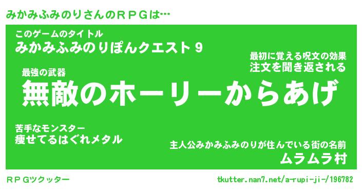 | 男性向けラノベタイトル風あだ名 | 『ミカミフミノリアートオンライン』 |