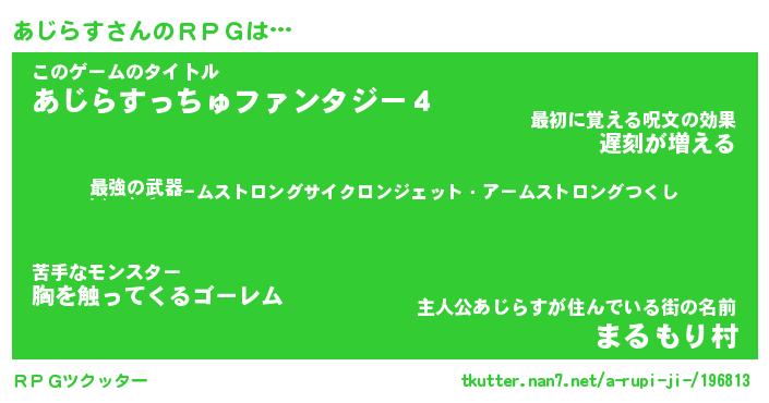 | ファンタジー風あだ名 | 『アジフェル』『エターナルアジラスー』 |