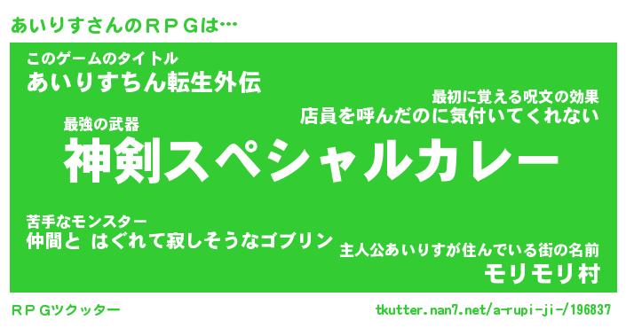 | 料理風あだ名 | 『節約★あいりすと油揚げの玉子丼』 |