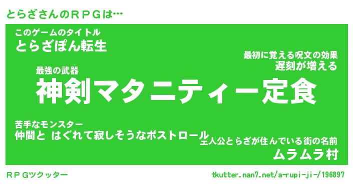 | 意味不明あだ名 | 『ペロリンとらざ』『とらざフォーエバー』 |