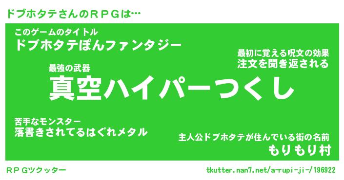 | ヒーロー風カッコイイあだ名 | 『スーパードブホタテ』『炎刃騎士ドブ』 |