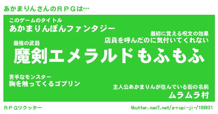 | ファンタジー風あだ名 | 『アカフェル』『エターナルアカマリンー』 |