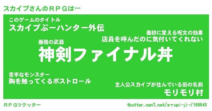 | ファンタジー風あだ名 | 『スカフェル』『エターナルスカイプー』 |